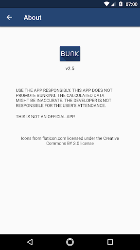 USE THE APP RESPONSIBLY. THIS APP DOES NOT PROMOTE BUNKING. THE CALCULATED DATA MIGHT BE INACCURATE. THE DEVELOPER IS NOT RESPONSIBLE FOR THE USER'S ATTENDANCE.