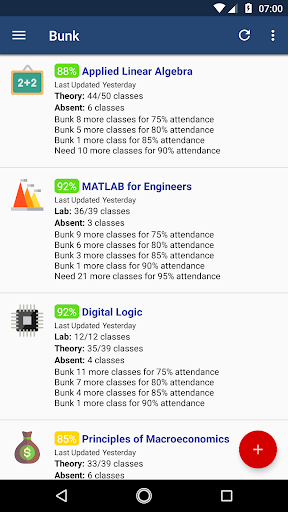 Studying in ITER? Tired of trying to figure out if you can bunk a class or not? This app will tell you exactly how many classes you can bunk or how many classes you need to maintain your attendance. Your attendance is fetched automatically, so all you have to do is enter your registration number and check if you can bunk your next class.