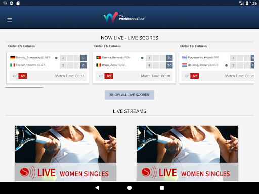Full draws and extensive tournament information on the ITF World Tennis Tour website available via the app.