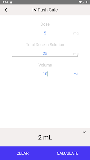 Also included is an IV Push calculator and Fluid Rate calculator!