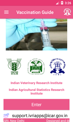 The IVRI-Vaccination Guide App designed and developed by ICAR-IVRI, Izatnagar, UP & IASRI, New Delhi is targeted to impart knowledge and skills to Graduating Veterinarians, Field Veterinary Officers, Paravets, Livestock, Poultry & Pet Owners about vaccination in domestic animals, poultry and pets.