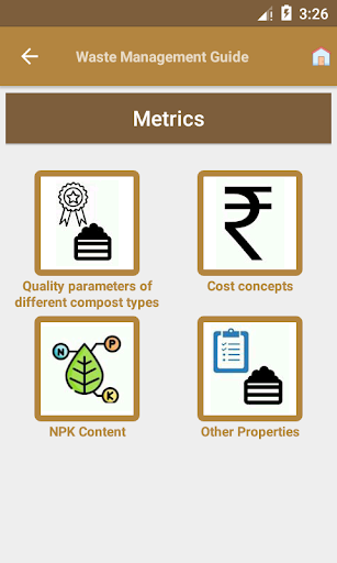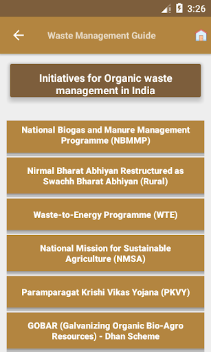 The app covers information related to composting & its various methods viz., aerobic, anaerobic, rapid, large scale, invessel & miscellaneous methods. It also provides information on various compost related products, vermicomposting , its various methods & procedure, nutrient profile & use of the vermicompost for crops. The app provides detailed information on biogas production viz., setting up its plant, inputs required, procedure, advantages, classification, designs of biodigester, biogas plant management & utilization of biogas and slurry. The app also provides information on newer alternatives of waste management viz., organic farming, waste decomposer, liquid manures & technologies for crop residue management. It also provides information on the initiatives taken by government for waste management in India & by-laws and policies for organic waste management in India etc. Additionally, the app provides information on nutrient profile of various wastes & composts. The app is useful for all the households as it contains detailed information on utilization of household waste.
