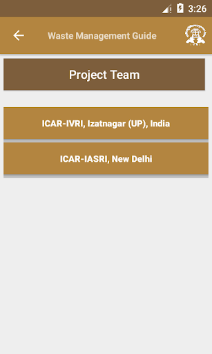 IVRI-Waste Management Guide App is designed and developed by ICAR-Indian Veterinary Research Institute, Izatnagar in collaboration with ICAR-Indian Agricultural Statistics Research Institute, New Delhi, to impart information and knowledge to graduating veterinarians, field vets, general public, farmers and other stakeholders about management of waste originating from agriculture, livestock and household activities.