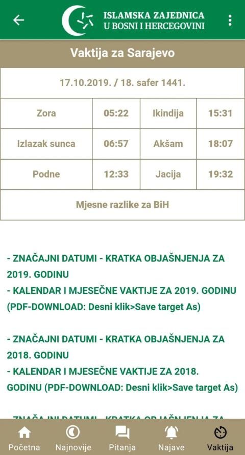 Mobilna aplikacija web-stranice Islamske zajednice u Bosni i Hercegovini.
