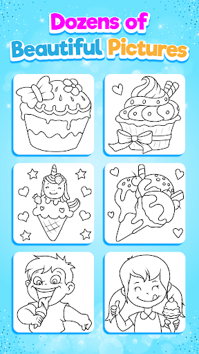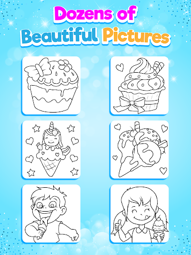Beautifully designed Coloring game packed with more than 50 beautiful pages of Ice Cream.