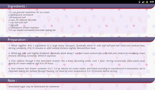 This App has in store a delicious collection of 25 mouth watering ice cream recipes! Each recipe is presented with simple step by step instructions. Further, this App is bestowed with an excellent user interface which renders a pleasant user experience.