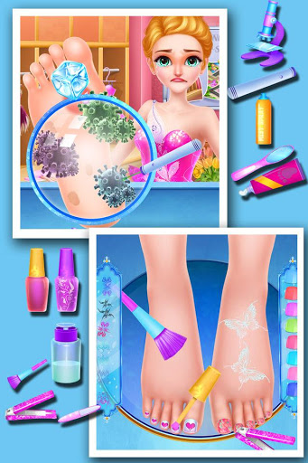 2. When the princess practiced the dance, the foot was injured. Now her feet are so painful, she burst into tears. Help the princess to heal.