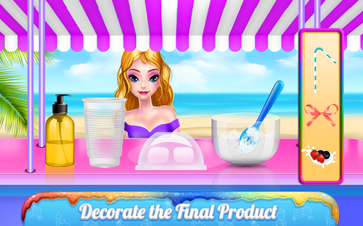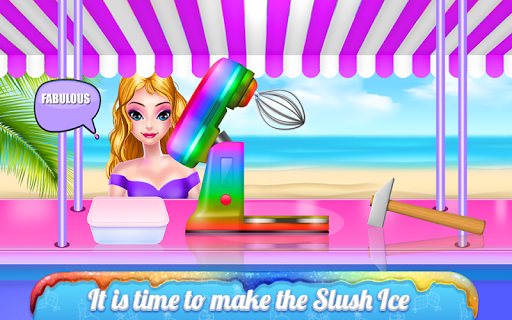 Find a better way to cool off on a hot day. Play this new cooking game where you can check out our ice slush recipe and learn to do it yourself. Not only that you will get a frozen rainbow flavored drink, but you will get to know the required steps for finalizing the whole making process. You will go through four major phases: purchasing, cleaning, cooking and decorating. With each step, you will have additional tasks to accomplish. Make sure you fulfill your mission and continue working on the ice slash making. Begin the game with the shopping session where you will search the entire supermarket to find the needed things from your list. Once you've found it all you can go to the cashier to pay. Move on to the ice truck where you must have a proper environment for ice slush preparing. Clean the place, remove the rotten ice cream and get the trash in the bin. The wheels should be wiped, the windows must be washed and the broken things must be repaired. Also, you will be sewing the ripped canvas and clean the interior of the van. Now you can start the ice slush recipe by putting some water in the freezer. This way you will have the ice prepared for your flavored drink. Smash the ice, add some lemon, pour some milk and mix it all up. Place the composition in a cup and don't forget to squeeze the corresponding food color in order to get your rainbow ice slush. All that left is to add a straw and decorate your yummy drink. Put on nice accessories like a bow, or maybe you can choose something from the fruity stickers. Either way, you can design your frozen cup as appetizing as you can.