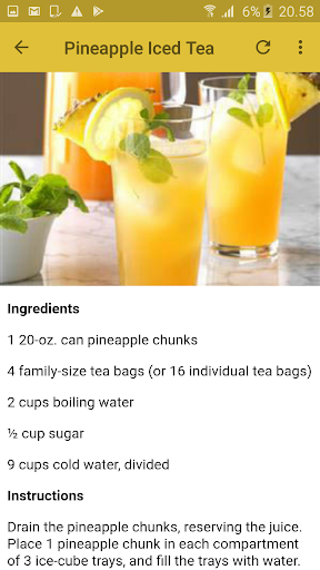 Though usually served in a glass with ice, it can refer to any tea that has been chilled or cooled. It may be sweetened. Iced tea is also a popular packaged drink.