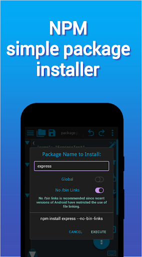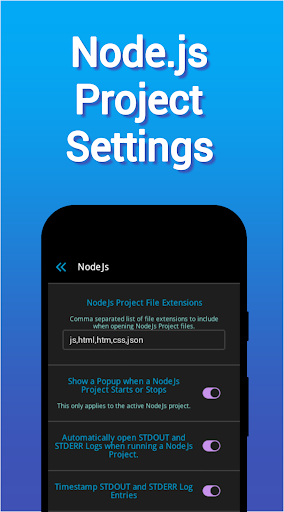Node.js is an open source, cross-platform runtime environment for developing server-side and networking applications. Node.js applications are written in JavaScript, and can be run within the Node.js runtime on OS X, Microsoft Windows, Linux, and with Icode-NodeJs - Android.
