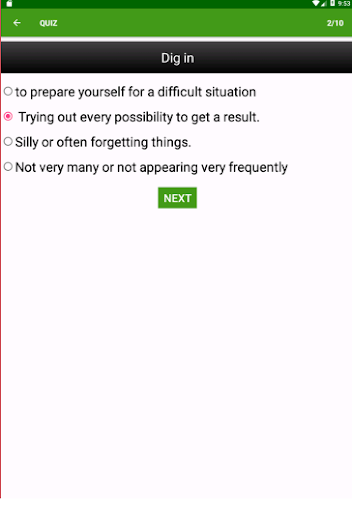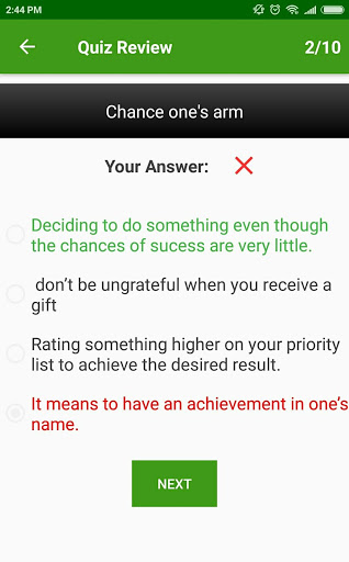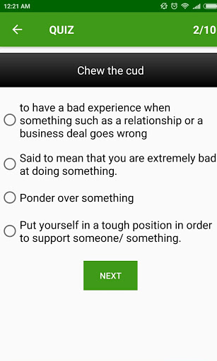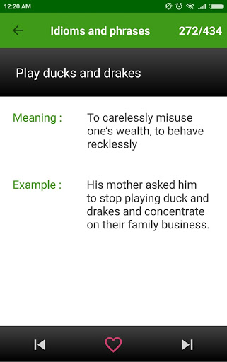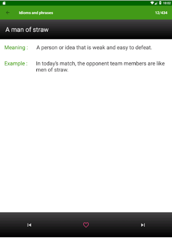 Our app lets you discover useful idioms and phrases. We also provide an explanation with meaningful examples. Discover Idioms through various categories. Our extensive examples help you understand the context that makes it easy to use them in daily communication. Take interactive quizzes to test your learnings and continuously improve your vocabulary. Daily use of this app will enrich your knowledge and can be helpful in comprehension and competitive exams preparation.