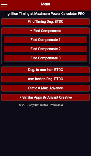 Use this app to find an ignition timing at maximum power of an engine. In this app included: