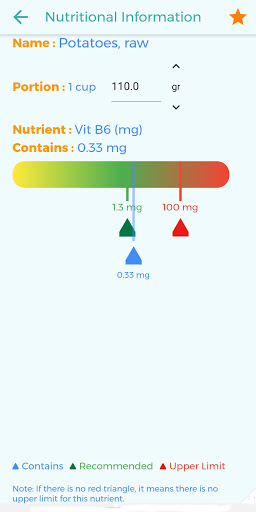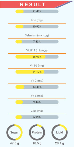 What vitamins and minerals do you need to stay healthy? What foods and what portion do you need to consume to strengthen your immune system? We provide users with scientific knowledge about the recommended values and the upper limits of nutrients as well as optimal nutritional values that can be obtained from certain foods. With this application, users can learn the health benefits of nutrients for protection against diseases and viruses, and plan a diet and check if their diet is healthy with respect to nutrients (Vitamin B-12, Vitamin C, Zinc, Iron, etc.) and serving sizes using the optimal nutrient level.