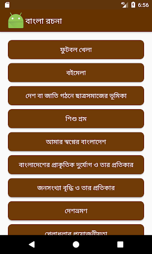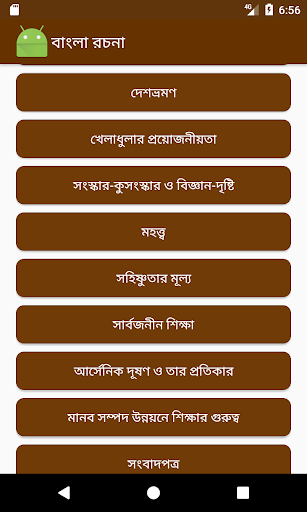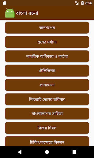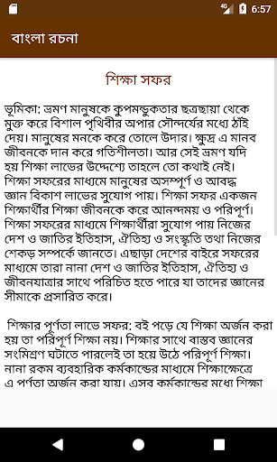 অনেকেই বাংলা রচনা অ্যাপ খুজছেন । বাংলা রচনা সমগ্র এই বাংলা রচনা অ্যাপটিতে খুব সুন্দর ভাবে তুলে ধরা হয়েছে । আপনারা এই অ্যাপটিতে মনে করতে বাংলা রচনার বিশাল ভান্ডার । আমাদের এই অ্যাপটিতে খুব সুন্দর ও সুশৃঙ্খল ভাবে ছাত্র ছাত্রীদের জন্য বাংলা রচনা তুলে ধরা হয়েছে । বাংলা রচনা সমগ্র অ্যাপটিতে সকল ছাত্র ছাত্রীদের কথা চিন্তা করে খুবই গুরুত্বপূর্ণ রচনা গুলো একত্রিত করা হয়েছে ।