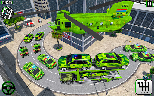 While talking about the controls of heavy vehicle transporter, Games principles vehicle transporter truck are straightforward. All you have to do is to simply press drive forward button to reach point on map as primary objective and then tap on the next button to drive the vehicles as army vehicle transporter, after delivering one vehicle carry out all the task of transporter truck military as army transport carry out all missions of the games. Become the driver of driving seat and drive army vehicle with various army machinery in army base camp as practical transportation.