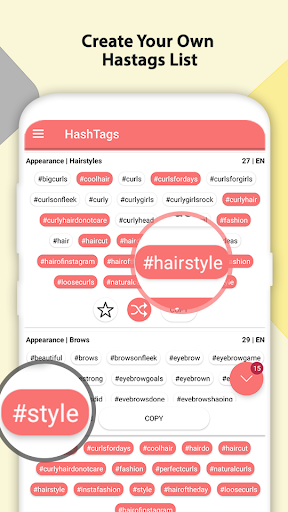 In Hashtags offers you the most popular and most trending hashtags related to your content. Here you can easily pick, copy and paste your favorite hashtags. This app has all popular hashtags, implemented convenient search.