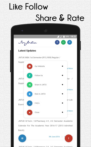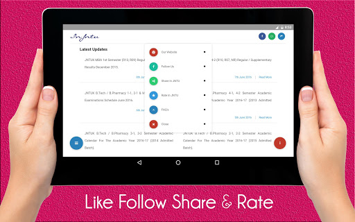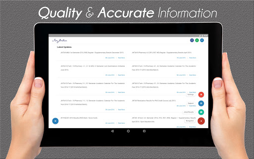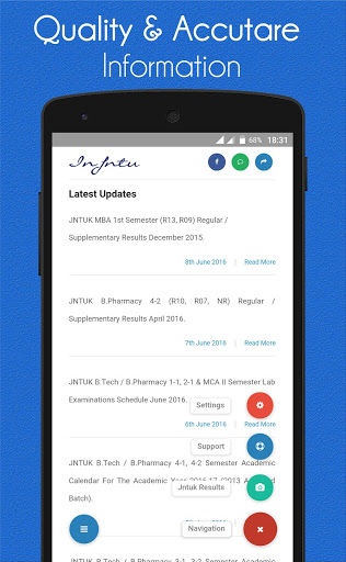Our app is designed to deliver Real-time Notifications, Updates, Exam Results and Time Tables etc. to JNTU Students of JNTU Kakinada (JNTUK), JNTU Hyderabad (JNTUH) and JNTU Anantapur (JNTUA).