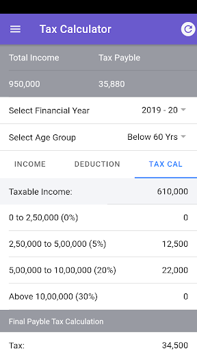 - Tax calculation for Financial Year 2019 - 20 / Assessment Year 2020 - 21