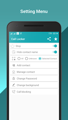 * Incoming Call locker provide Lock Type Settings : All, Known, Unknown, Selected contacts.