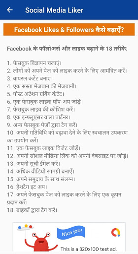 Now a days everyone create their personal account on social media sites to earn the name, fame and money. But increasing the followers and likes on such social media platform is becoming a challenge for them. Using this app, we have tried to guide the social media users to guide them about how to increase the like and followers on social media to achieve their goals. This free followers app will help you to get more exposures on Social Media