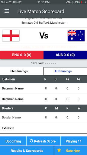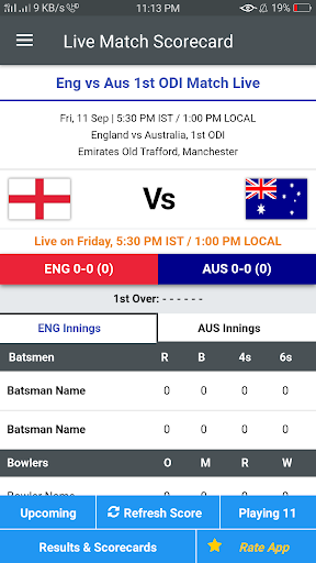 updates with full Cricket scorecard. Get today's Cricket match scorecard updates on your mobile phone. If there is a Cricket match today then you can stay updated with the live match from this app as this app will provide each update for today's live match, like the live scorecard, playing 11 updates, match result.