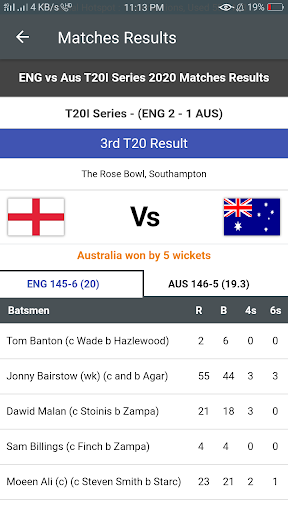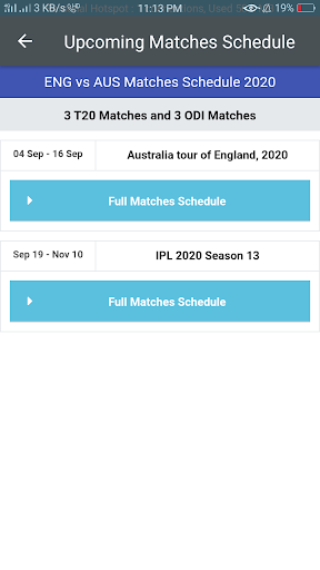In this app, you can also check which is tomorrow's or upcoming match and what was the result for yesterday or the last Cricket match.