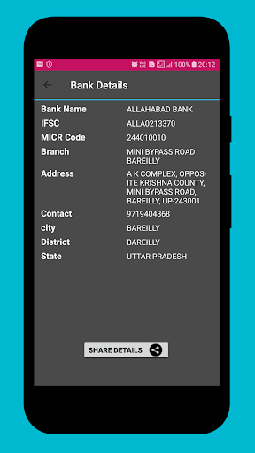 Note: If you have doubt for IFSC and pin code then confirm any details shown in this app there may be mismatch possible.