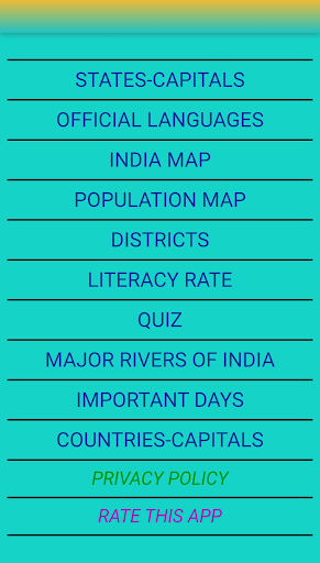 This app is useful for every Indian. User Interface is developed very simple for better understanding and good user experience. From this application you can get below maps and information charts.