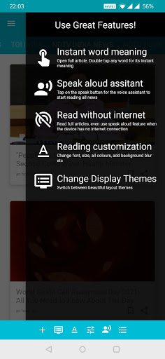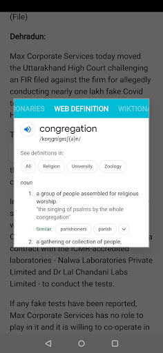This feature is very useful for anyone who likes to see word definition instantly whenever they encounter a new word while reading any news article. A simple double tap on a word will pop up the dictionary and shows up word definition from both offline dictionary and web.