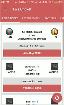 - All Live, In-progress, upcoming and recent match details.