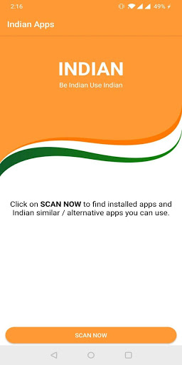 Indian Application, the free app suggestion service to find alternative to foreign apps and suggest Indian Applications apps, It comes with a clean and neat design, and the interface is so user-friendly that you will get the whole idea as soon as starting to scan the list of installed apps on your phone or tablet. Once the scan is complete, you get to see the list of Indian apps you can use instead of the foreign applications you are already using.
