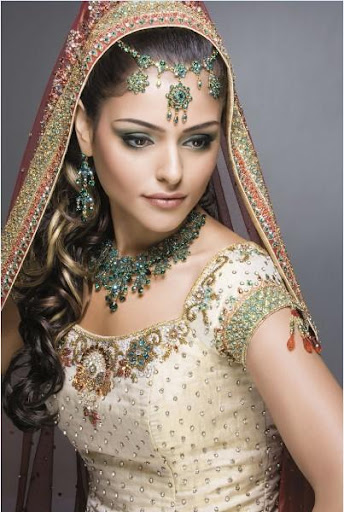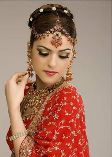 Culture and traditions of India are very different from western culture. Indian wedding and the dress is much more different. As for skin care is just beginning six weeks before the ceremony, and before applying makeup truth. General models for bridal makeup is very colorful. They pay much attention to the preparation of the skin and pit body spirit connection as a basis for beautiful skin. And there are also many decorations are made of gold and other precious metals and precious stones at the bride. His whole body he was decorated with the decoration. The most famous and ornaments used by the Indian brides is an ornament in the middle of the forehead.