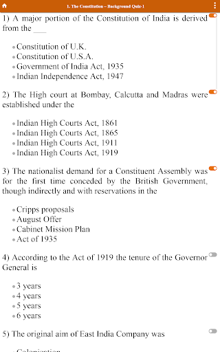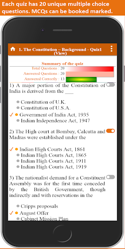 App covers 1300 MCQ (Multiple Choice Questions) on Indian Constitution, Indian Polity, Governance & Recent political activities that includes Current Affairs on Indian Polity