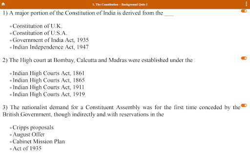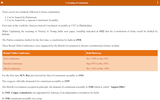 App is designed such away it covers key Highlights of Constitution and the Exercises on Constitution makes each student an expert on Constitution of India.