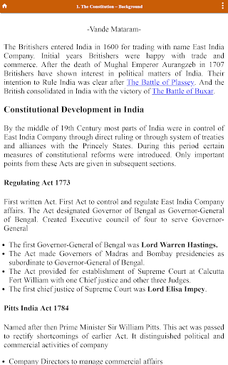 This app explains the important features of the Indian Constitution in simple language. App is an indispensable guide to the students of Indian Constitution and Political Science.