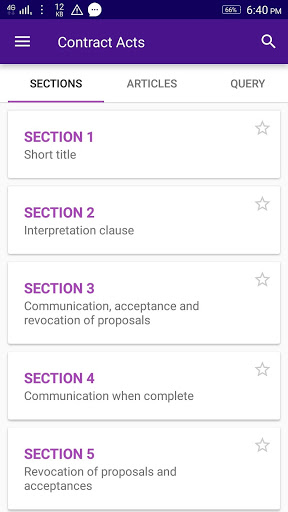 App provides an option to ask query and gives access to English bare act of the Indian Contract Act, 1872 free of cost. You can ask all your queries on Indian Contract Act, 1872 and get all of them cleared with the Indian Contract Act App. You can also access articles on Indian Contract Act, 1872 with the help of this app for the first time in India.