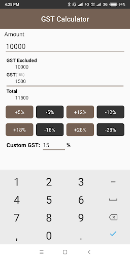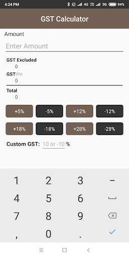 You can do just simple tap on +5% to add 5% in entered Amount and click -5% to find out GST excluded price.