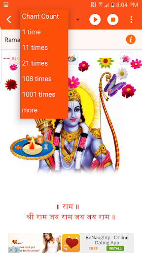 - Repeat Mantras 11,21,108,1001 and custom chant count as needed.