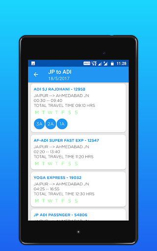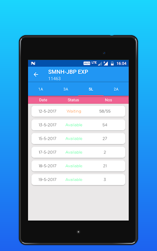 4. Seat Availability in trains based on category with next 5 days availability in same screen. No need to move to any further screen for next day availability.