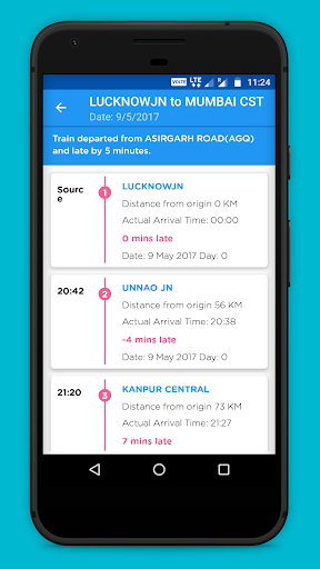 5. Train route information in both list as well as in map form. With each station train arrival info on the marker. You can save the route also for offline access of the route.