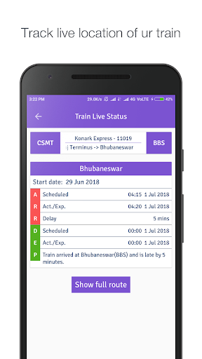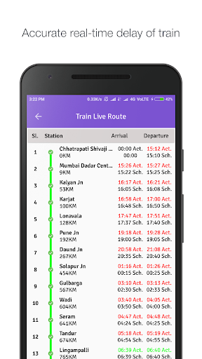 Check live train running status to know if the train is running timely or late. Also you can see the current location of your train along with real-time delay and you can spot your train accurately..