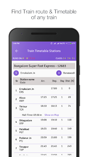 Know train schedule and route of train with halt duration at its stops.You can see the location of station in google maps.