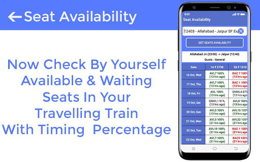 You can find all available seat in any train, anytime & anywhere on your mobile.