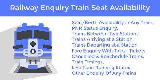 Using Railway Enquiry application you can get all types of information of railway like train time table, PNR Status, Seat availability, Live train status, Ticket fare, Train at your station & many more information.