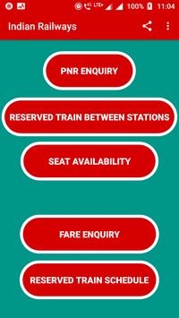 With this application we can carry out many processes like PNR enquiry, reserved train between stations, seat availability, fare enquiry and train schedule and tracking service