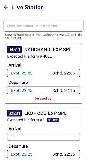DISCLAIMER: This app provides data from third party websites. This app is not affiliated with NTES or IRCTC any how. By using this app, you are solely responsible for any legal implications/liabilities arising from using the app.