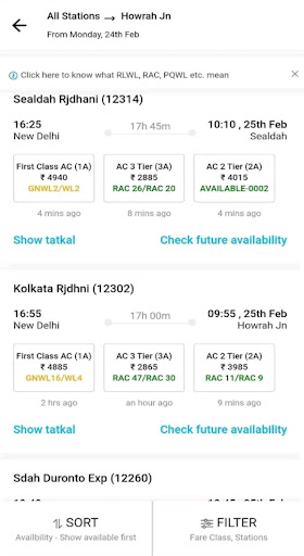 Fare Enquiry : Find fare for all the travel classes like first ac, second ac, third ac, sleeper, etc