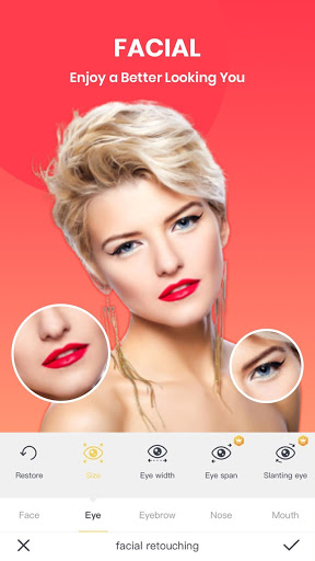 Tune your face using, the acne or pimples remover and blemishes remover options, for a clear and beautiful skin. Make the most use of this Selfie Camera Beauty, and tune your face, for a makeover of your pic like never before. Explore the various beauty accessories options of this face makeover to make your pic look special.