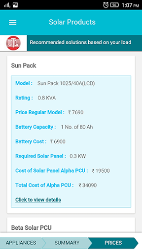 Calculate number of Solar Panels, Inverter and battery requirements for your rooftop and compare prices.