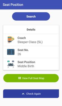 Know your seat position just by entering the seat number and selecting the coach of the train. Its a complete offline application means this app does not require Internet Connection.